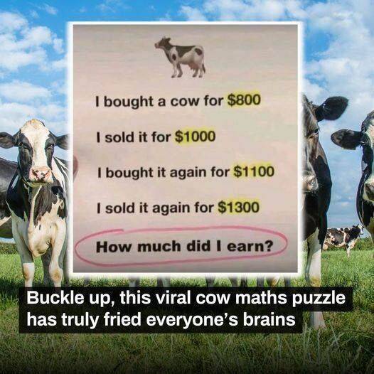 Certainly! The viral cow math puzzle has captured Twitter’s attention, sparking intense debates over the correct solution. Unlike traditional brain teasers, this one revolves around buying and selling a cow, giving it a unique cottage core charm.
