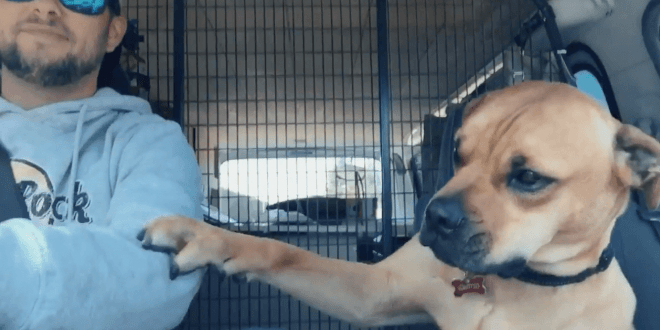 A dog was adopted at the shelter lately and all the way home he held his owner’s hand just like a human being. Sam Clearance adopted Stanley at a shelter for which he volunteers. At the first time that he saw Stanley, he decided to adopt him immediately because he knew that Stanley would not make it at a foster home.