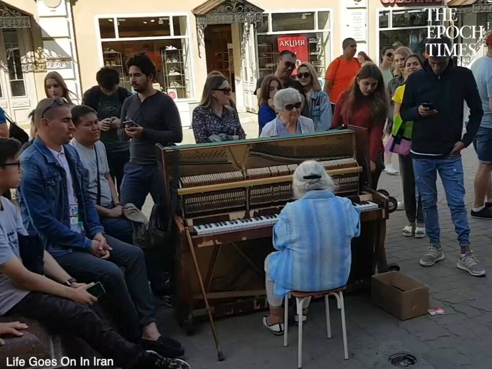 In the heart of Kazan, amidst the vibrant tapestry of urban life, a mesmerizing spectacle unfolds, captured by the lens of a wandering filmmaker. The bustling streets, alive with the pulse of humanity, serve as the backdrop for a scene of extraordinary beauty and depth. It is here that we encounter an elderly woman, her presence a beacon of quiet strength amidst the chaotic rhythm of the city. With weathered hands that betray the passage of time, she approaches a modest street piano, nestled amidst the hustle and bustle of daily life. As if guided by an unseen force, her fingers delicately caress the worn keys, igniting a symphony that transcends the confines of space and time.