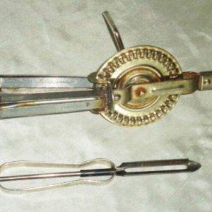 This was followed by E.P. Griffith’s whisk patented in England in 1857. Another hand-turned rotary egg beater was patented by J.F. and E.P. Monroe in 1859 in the US.