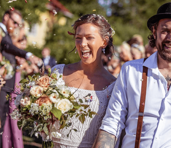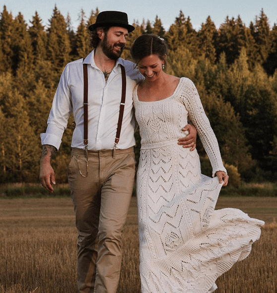 Kika got married to her husband Jukka Heino on Saturday, September 10, at their new home (which inspired the cottage-themed wedding tone), just 4 days after she’d finished her dress. Although her partner was a bit more skeptical about her last-minute knitting project, “in the end, he was super impressed and proud of me, and thought it looked really good too,” Kika said.