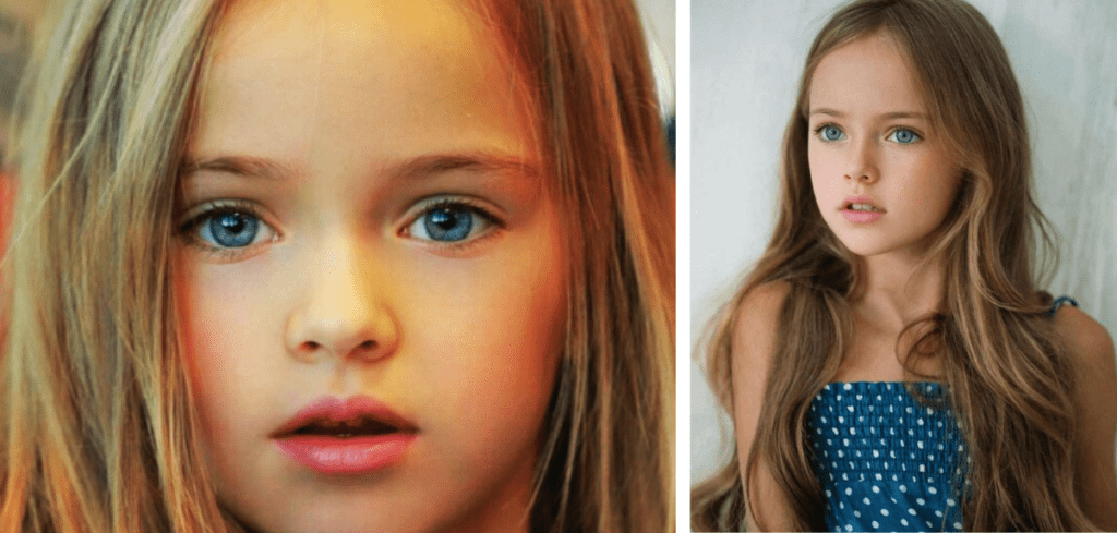 Kristina Pimenova’s rise to international fame began at a surprisingly young age, when her childhood photos first appeared on the Internet. These images, which showed exceptional beauty, quickly attracted the attention of both the general public and the fashion industry. Kristina, often described as ‘the girl with the most beautiful face on earth’, became a phenomenon. This early fame laid a solid foundation for her career and brought her the title that many still use when speaking of her, a label that proved to be both a blessing and a challenge in her subsequent life.