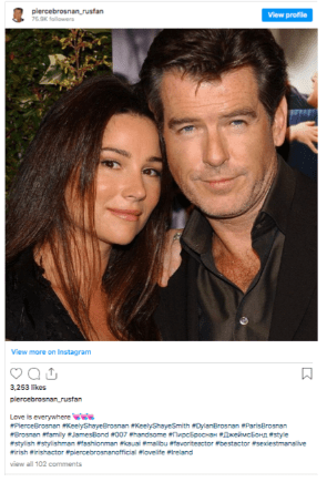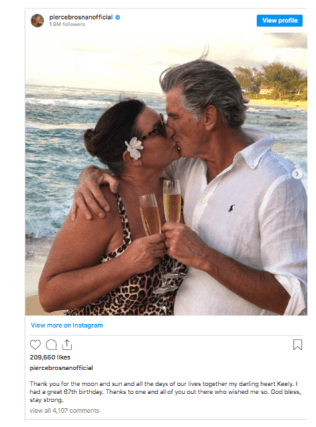For example, In 2021, Brosnan took to Instagram and wrote a touching post to his wife to celebrate her 58th birthday:
