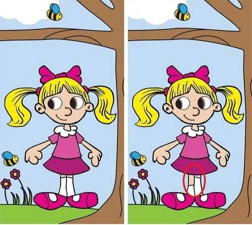Try to find the hidden difference in the image of a girl in a pink dress in 16 seconds