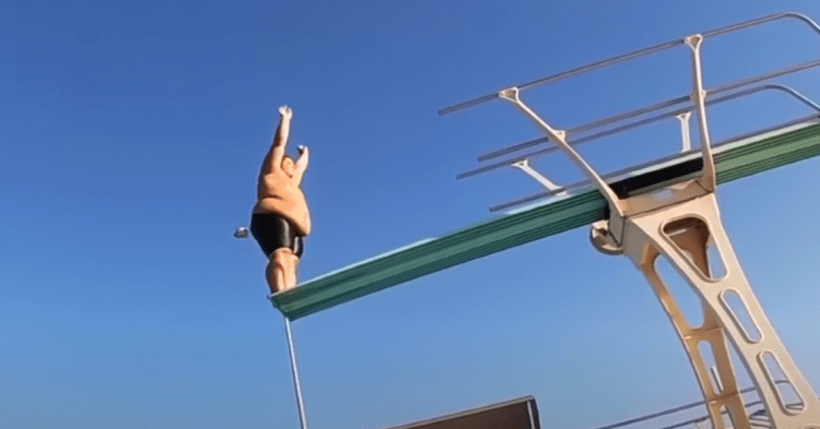 In the video, the young boy stands on top of the high diving board. When he launches himself off the board, he begins to float through the air performing a flip that will leave you breathless. The teenager’s name is Zeke Sanchez, and he is passionate about diving and wants the world to know that he can participate in the sport as well, even though he may be larger than average.