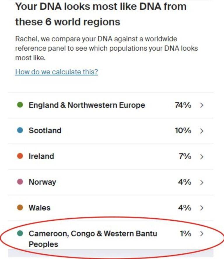 Rachel then decided to take matters into her own hands, sharing her alleged DNA results on Facebook to prove her ancestry.