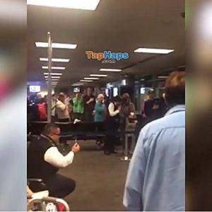 Neal, who recorded the video, explained that nearly everyone in the airport stood at attention to show their respects for the fallen veteran. He claims that “all but two” people stood in reverence of Snow’s performance of the National Anthem.