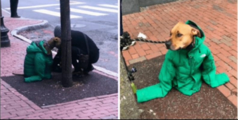 However, the dog was clearly trembling due to the bitter cold… The owner then did something incredibly kind by lending the dog her jacket!
