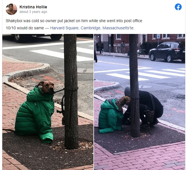 Kristina expressed gratitude to the woman for taking care of her dog after noticing the wonderful deed.: “She just replied, ‘Thank you! I don’t want him to be cold!’”